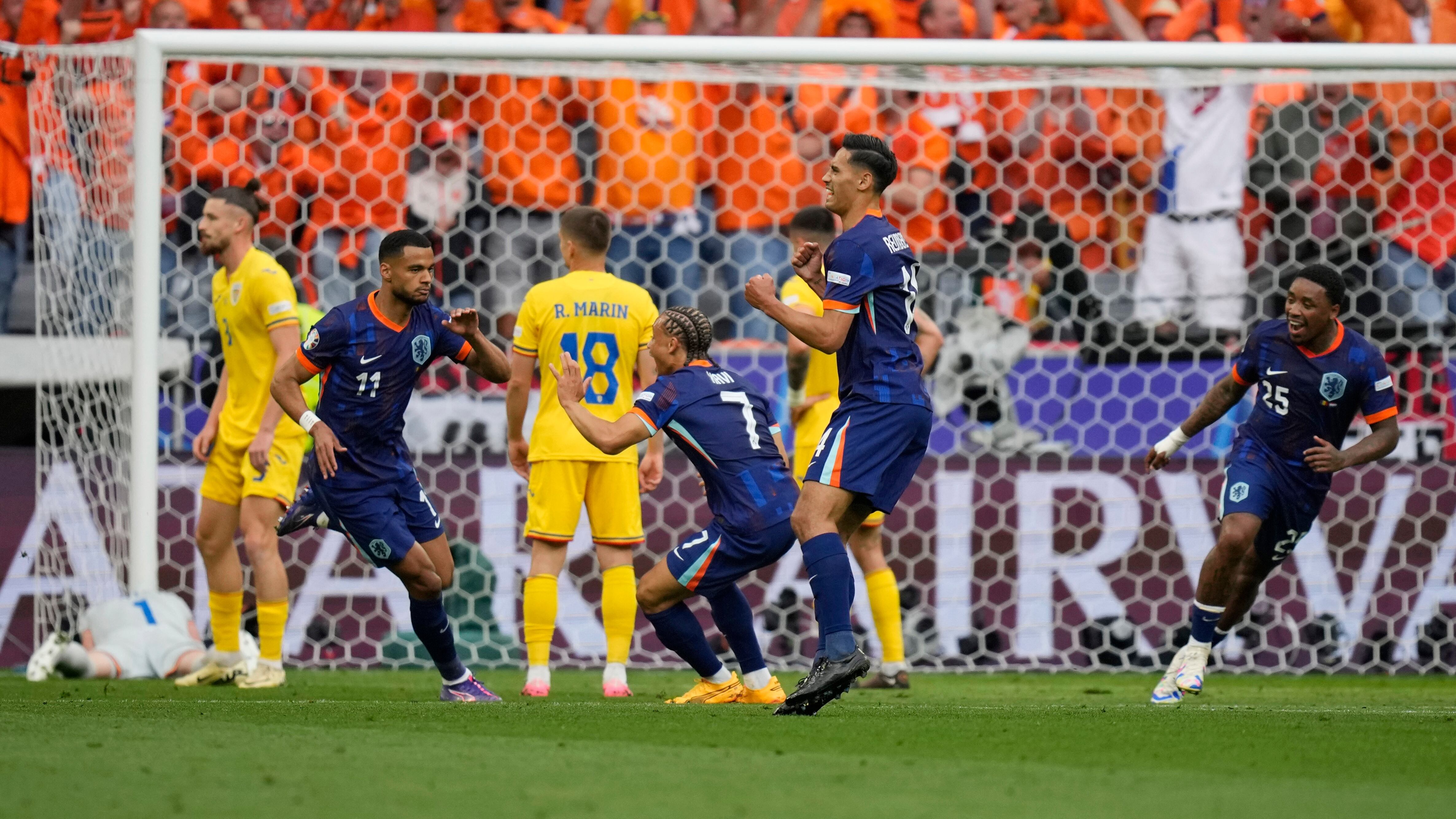 The Netherlands advanced to the quarters of a UEFA Euro for the first time since 2008 with a 3-0 victory over Romania from Munich.