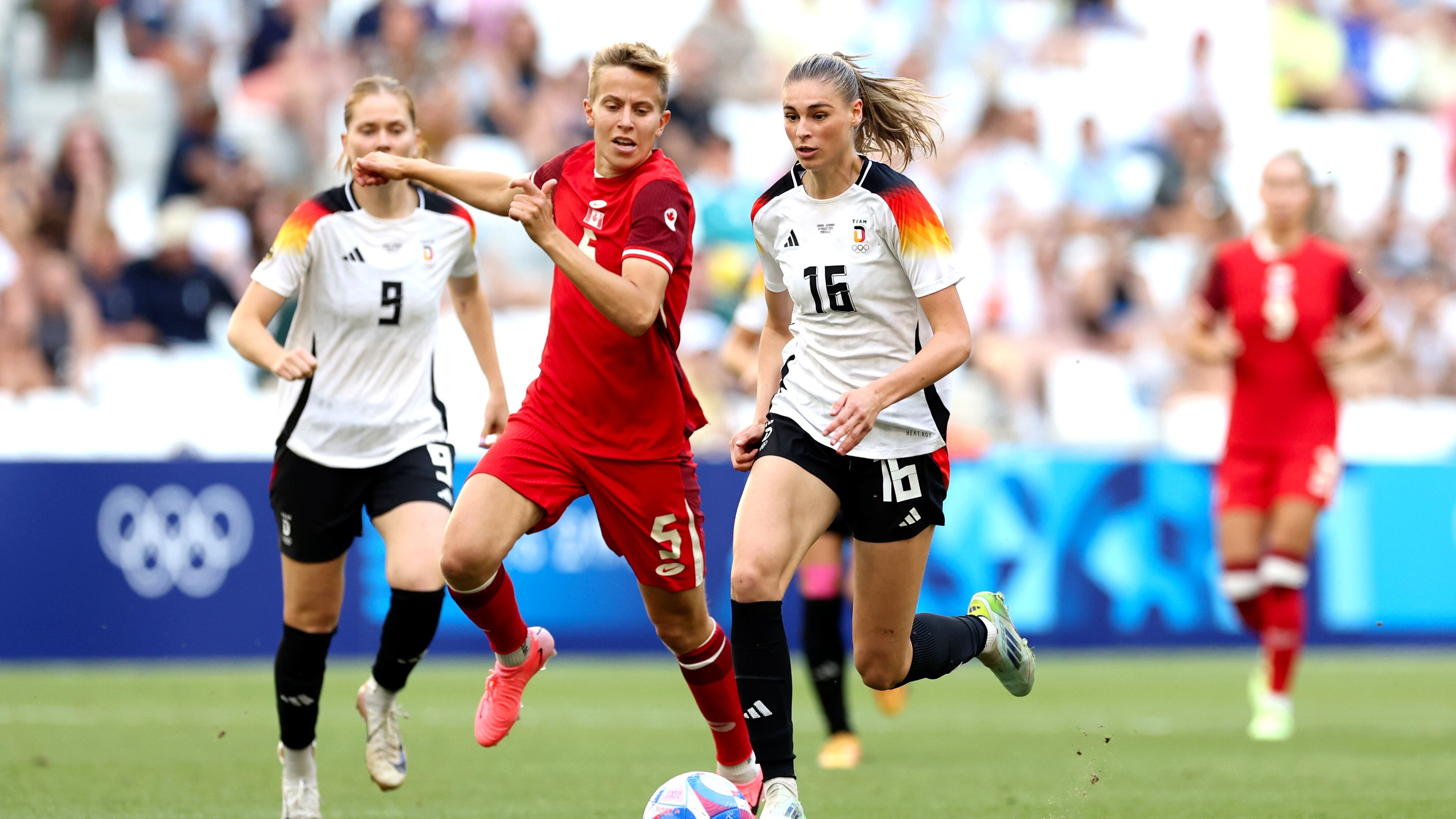 The German women's national team has controlled much of the play, and have created multiple threatening chances. Kadeisha Buchanan and Kailen Sheridan have been up to the task, however, and the match is still scoreless.