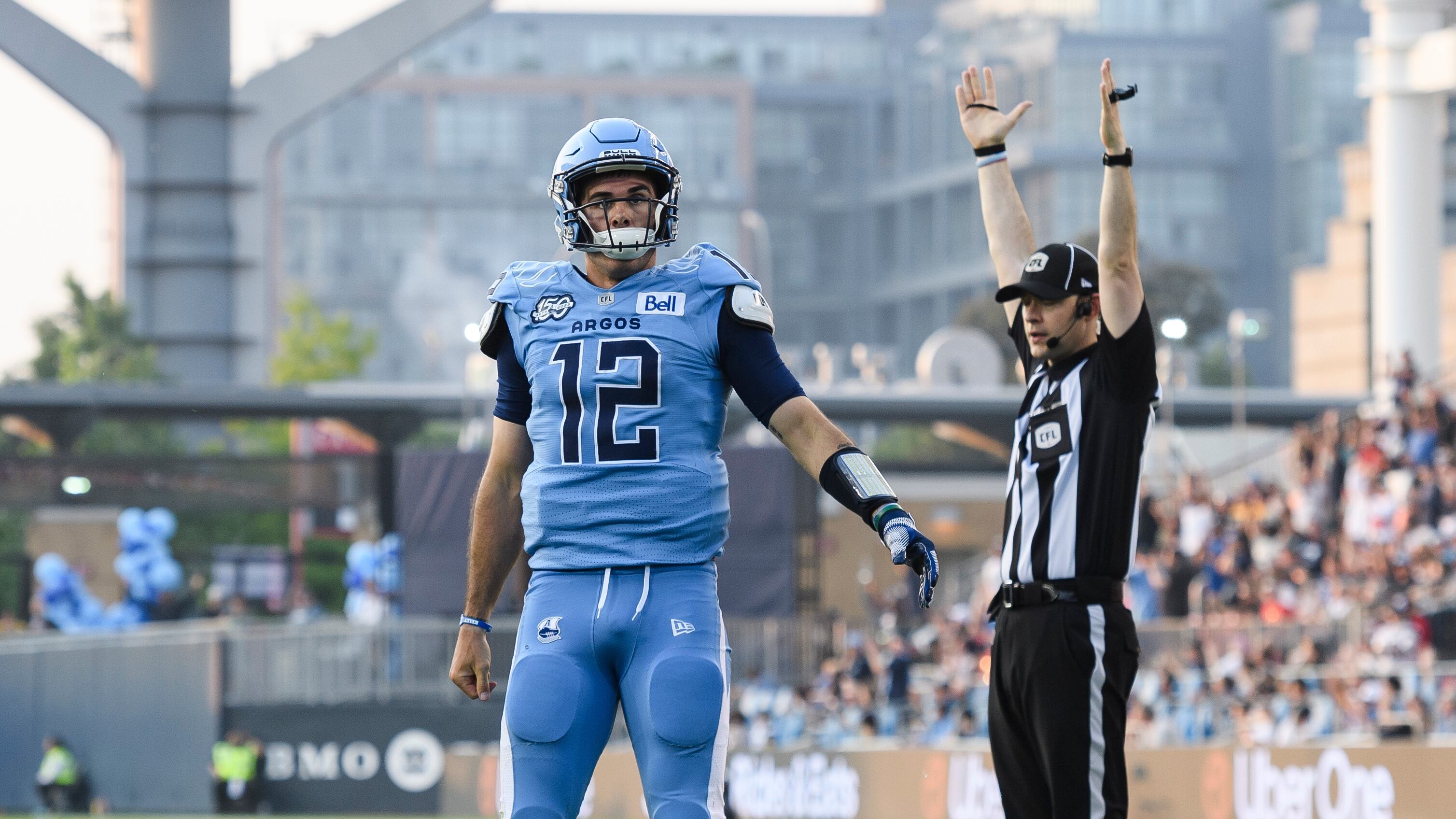 Kelly opened his first season as Toronto’s starter Sunday night by rushing for three touchdowns and throwing for 192 yards by halftime in a lopsided 32-14 win over the visiting Hamilton Tiger-Cats in the defending Grey Cup-champions’ 2023 season opener.