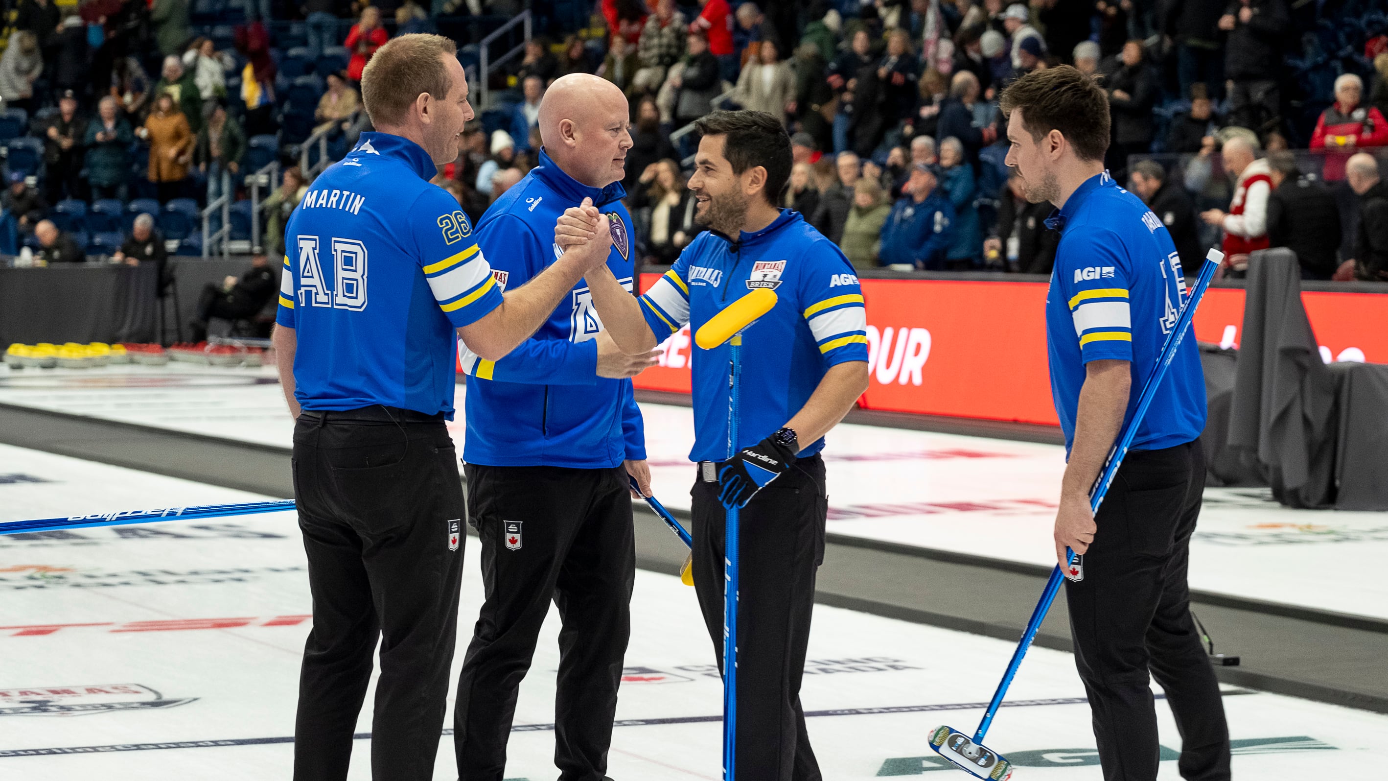 Jacobs, Marc Kennedy, Brett Gallant and Ben Hebert arrived with tanks nearly empty after their run to Olympic gold. The foursome dug deep to stay in contention, and eliminate hometown favourite Gushue 7-5 on Saturday.