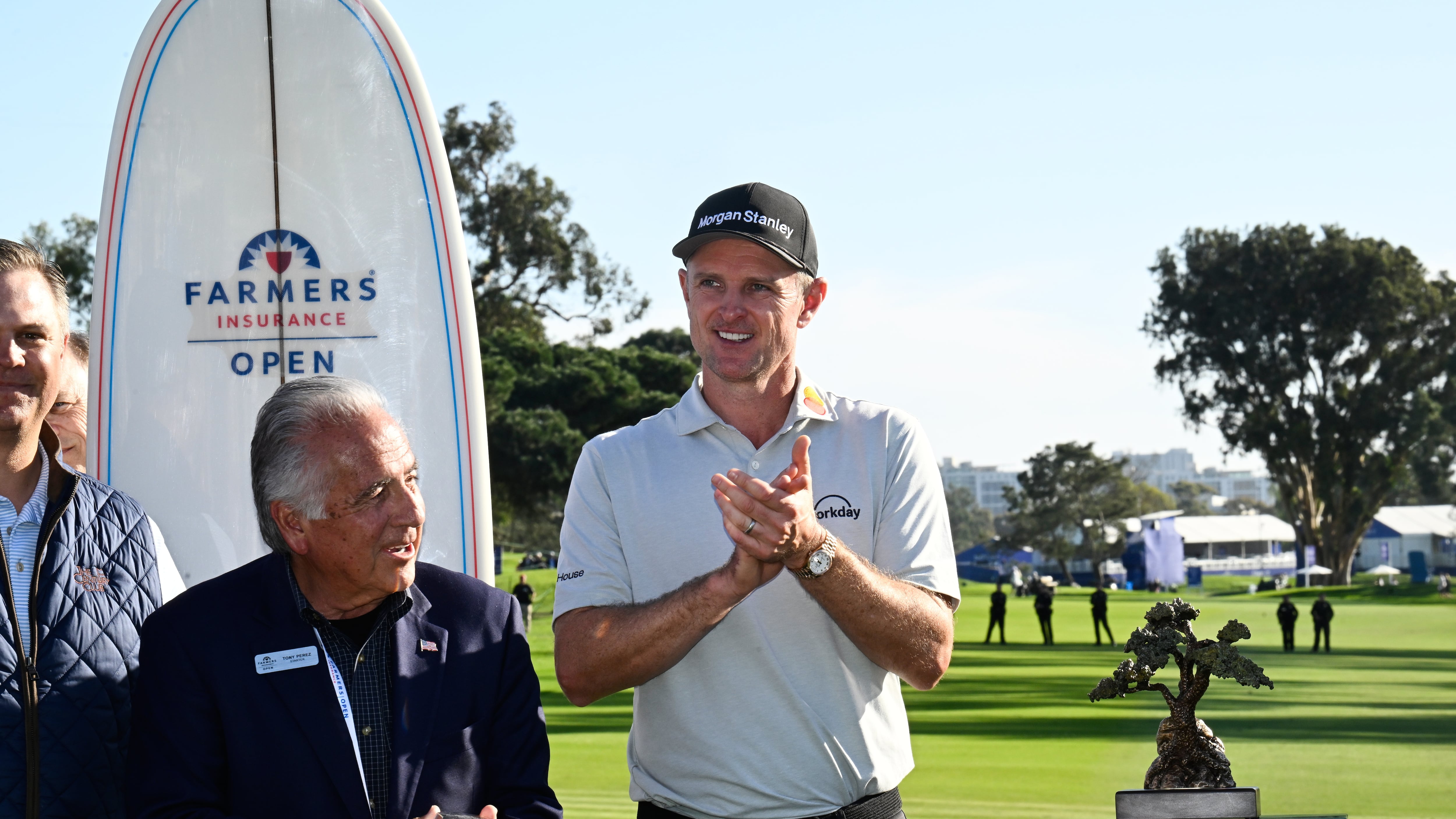 Rose didn’t recall getting the surfboard from when he won at Torrey Pines in 2019. The Century Club of San Diego was more than happy to send him both, except that Rose had a favor. He wanted one of them to go his caddie, Mark “Fooch” Fulcher.