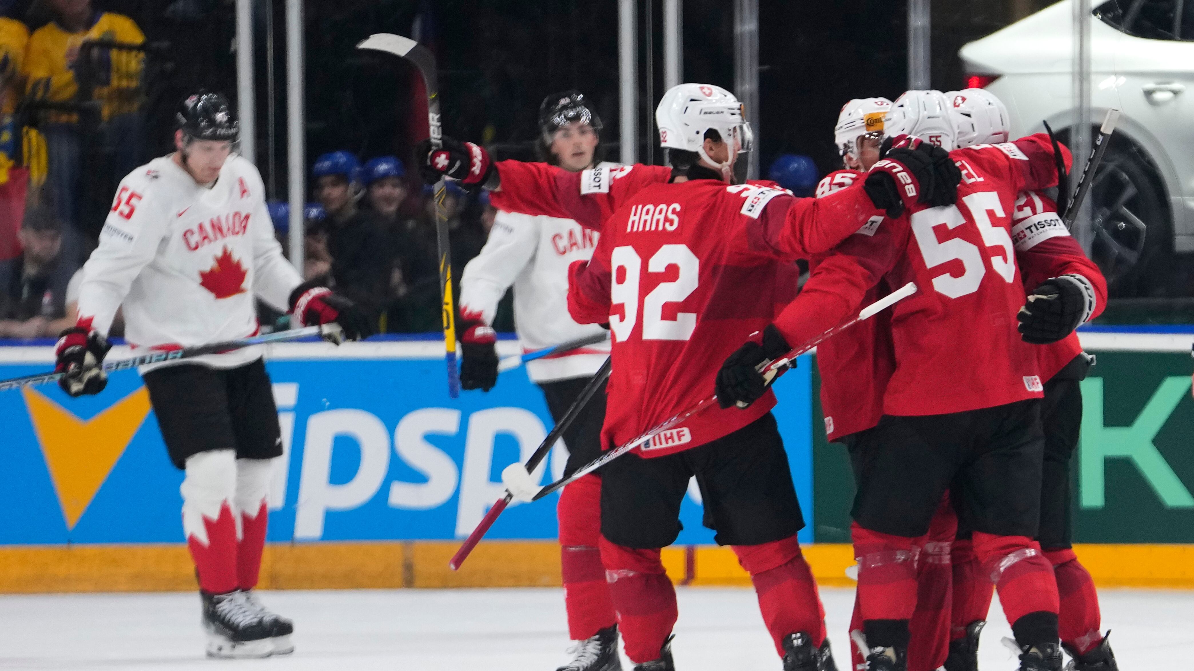 Switzerland outshot Canada 17-8 in the first.