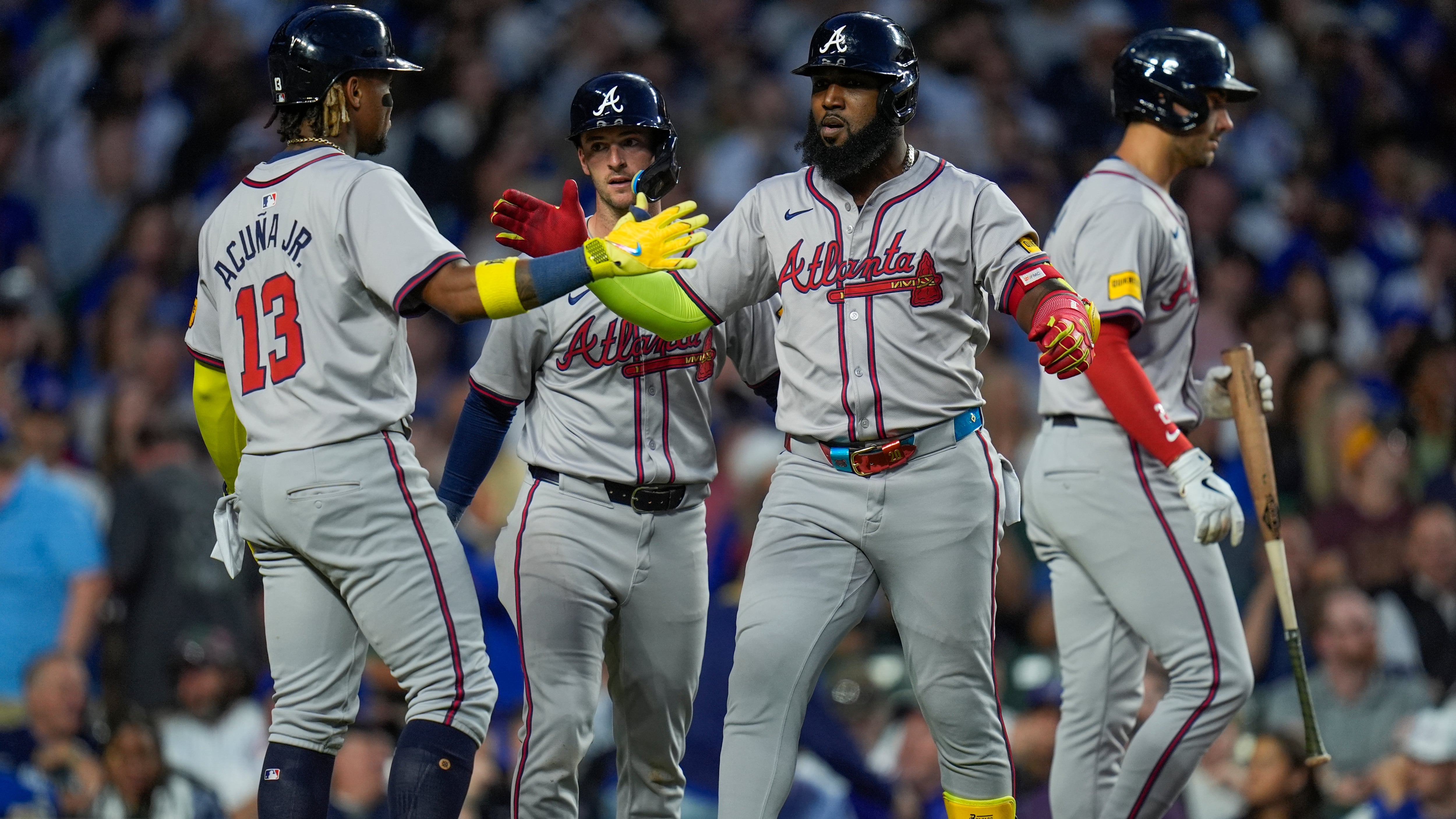 The Braves broke it open with six runs in the seventh. Ozuna hit a three-run shot off Jose Cuas with two out, and Olson followed with a drive to right for an 8-1 lead.