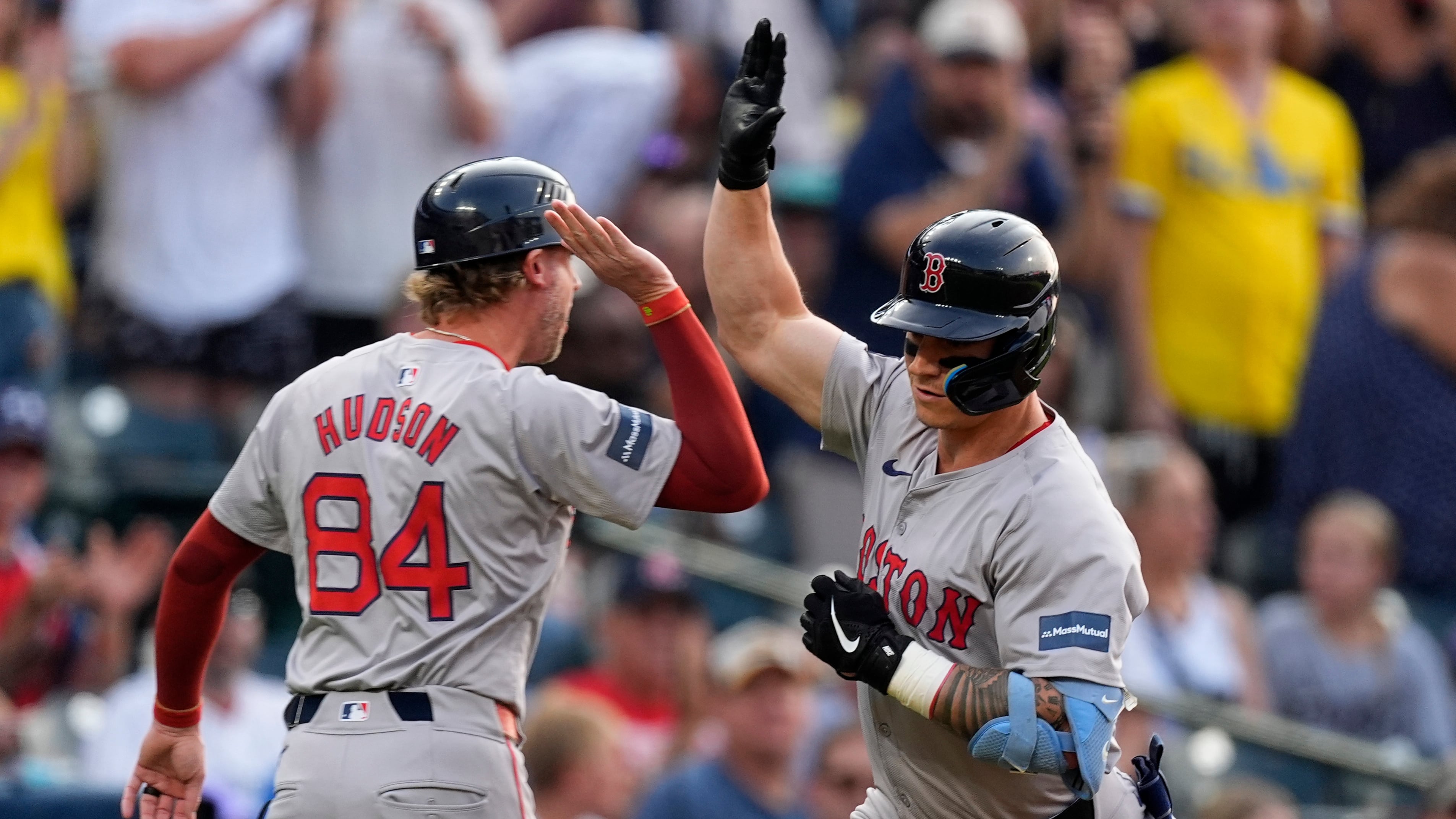 Boston got a scare when third baseman Rafael Devers stayed down after making a diving attempt at Ezequiel Tovar’s line-drive single in the sixth. Devers was holding his right shoulder as he sat in the infield but stayed in the game after getting checked out by a trainer.