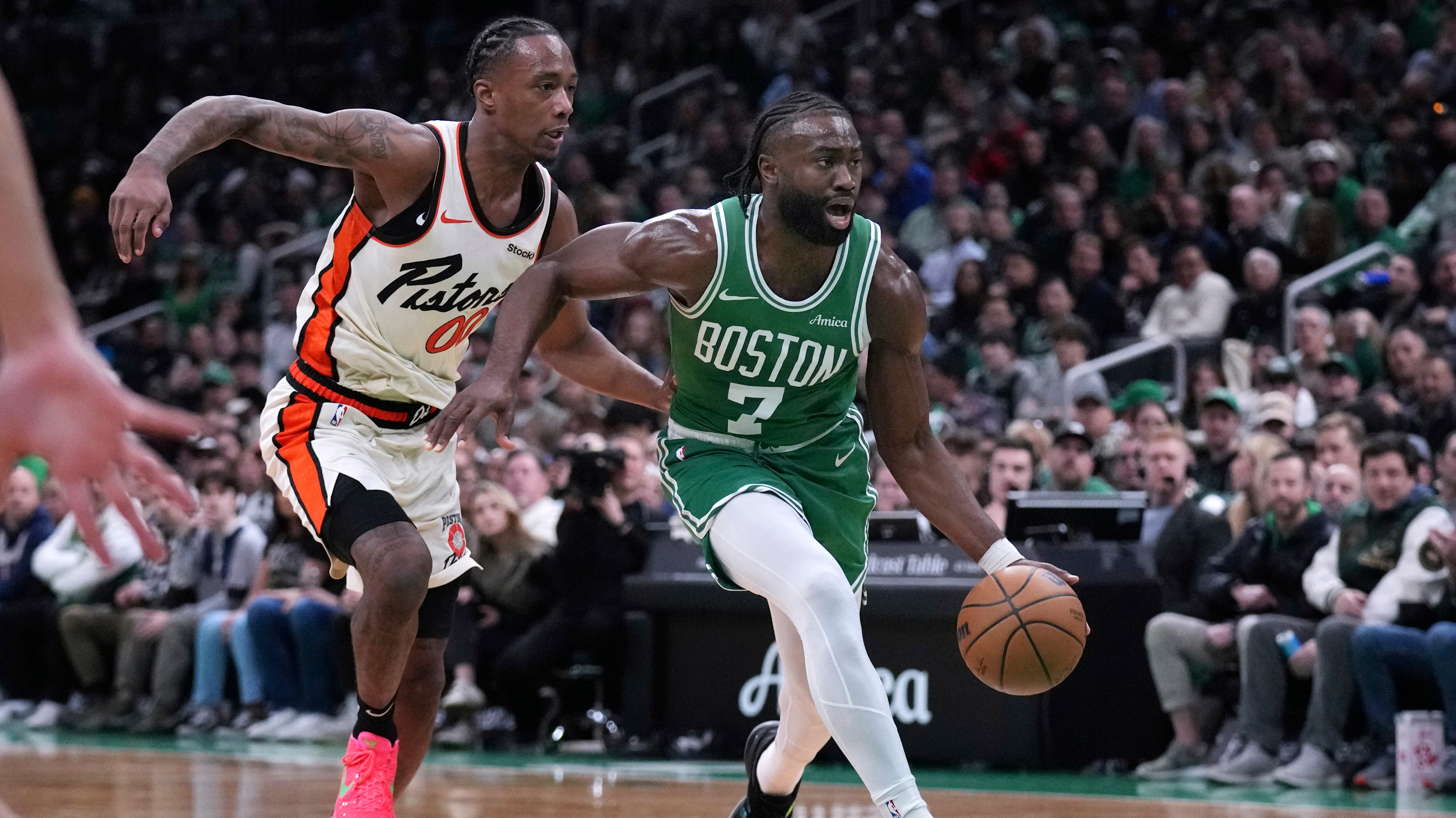 It occurred right before the end of the first quarter when Brown threw down a two-handed dunk against Detroit's Isaiah Stewart. Brown then stared at Stewart for a few moments before moving his hand against his throat.