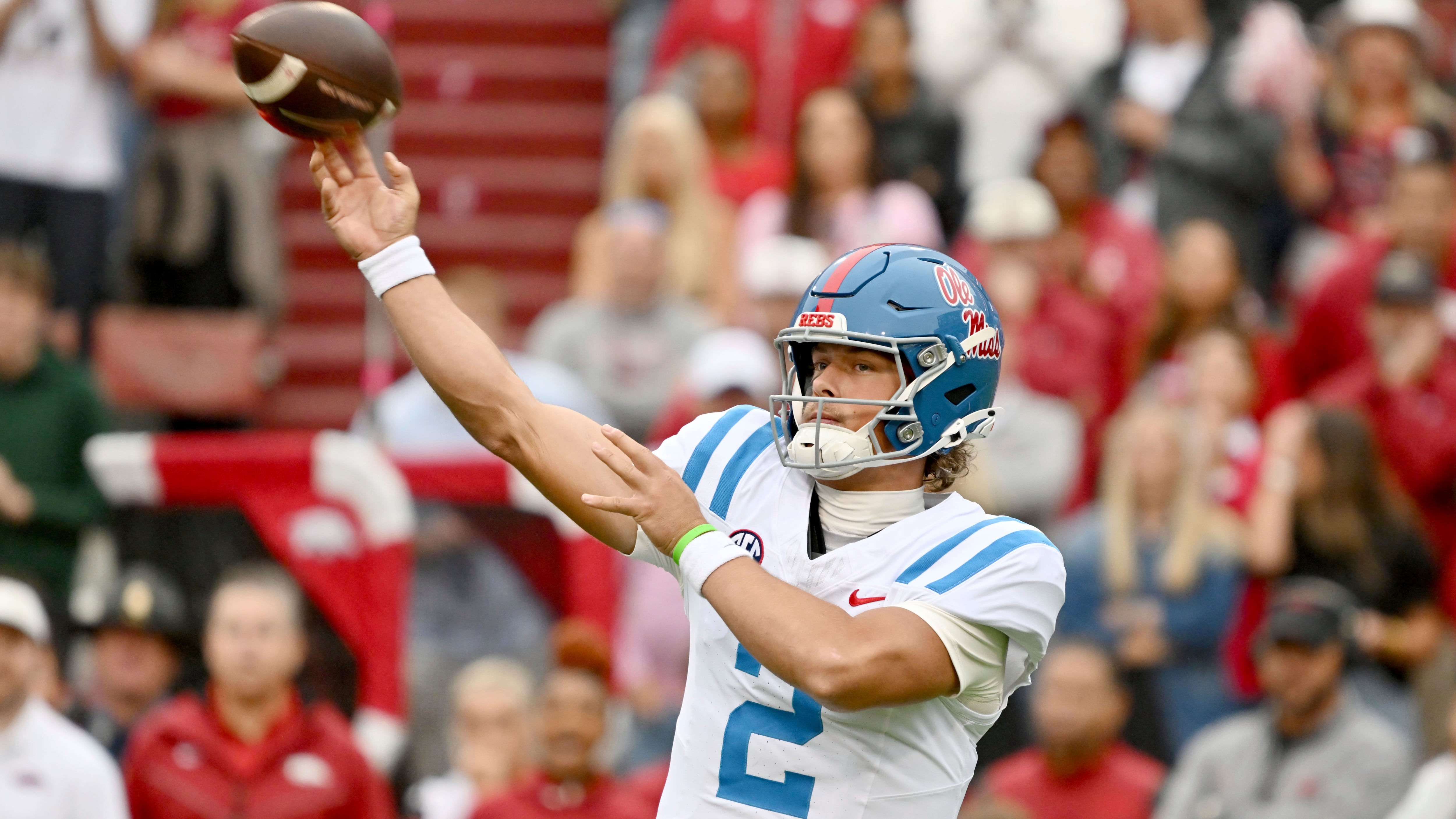 FAYETTEVILLE, Ark. (AP) — Jaxson Dart set Ole Miss records for yards passing and touchdown throws in a single game, leapfrogging Matt Corral and Eli Manning, in the 19th-ranked Rebels’ dominating 63-31 win over Arkansas on Saturday.