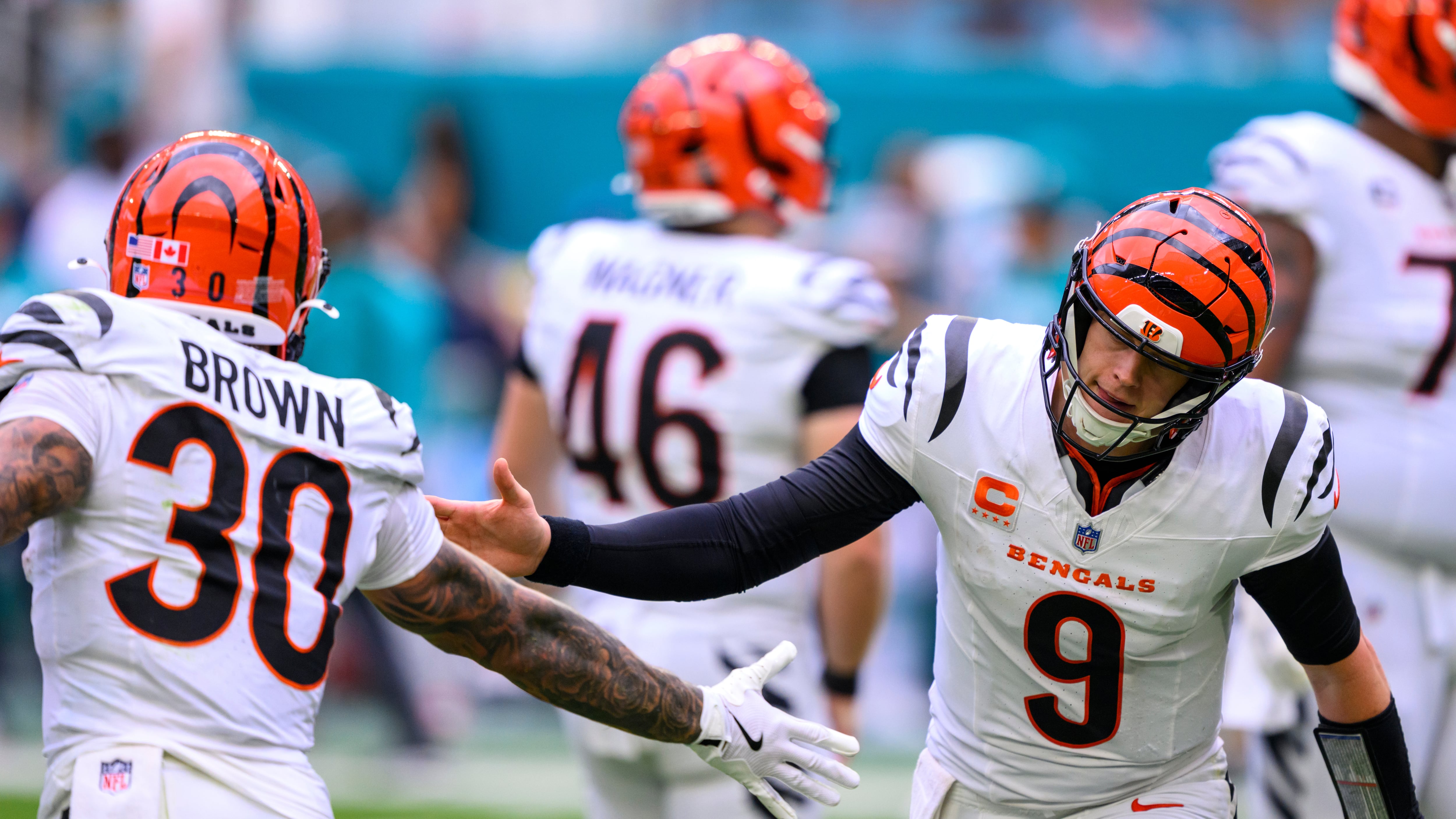 Cincinnati’s defense made the most of its chances against Miami rookie quarterback Quinn Ewers, who was making his first NFL start. In the third quarter, the Bengals forced three turnovers and also got a fourth-down stop that ended a Miami drive. Cincinnati converted every single one of those defensive stops into touchdowns.