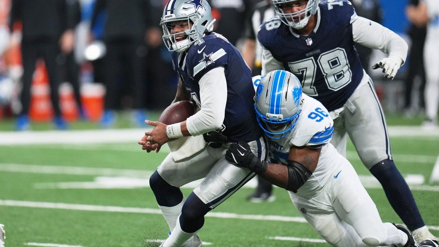Prescott was sacked a season high-tying five times and threw two interceptions, including one on the first play of the second half that the Lions converted into a touchdown for a 27-9 lead.