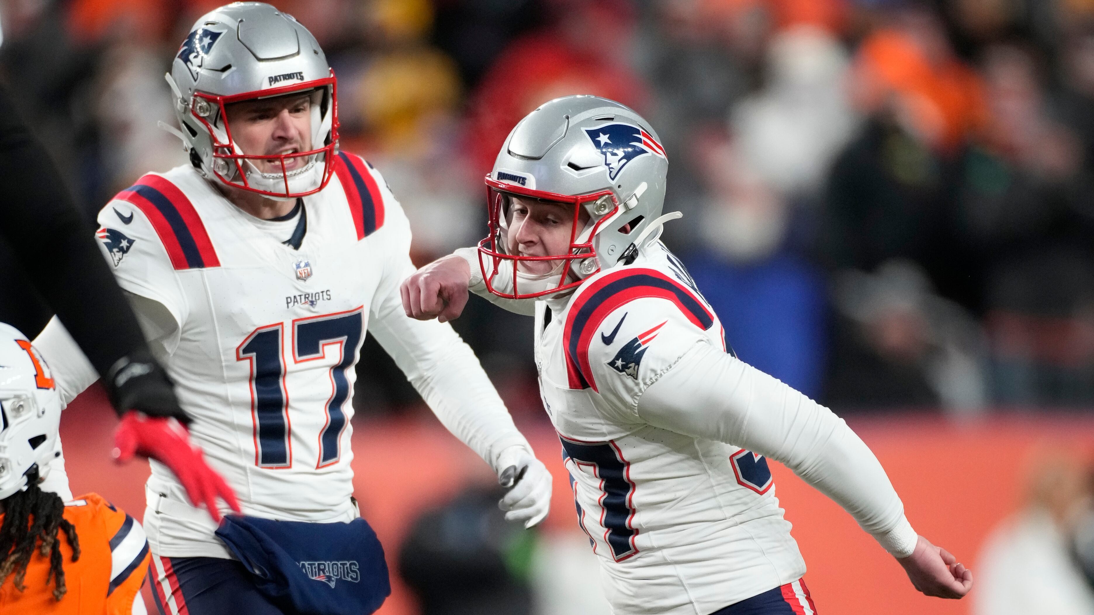 Chad Ryand's career-long 56-yard field goal with two seconds left was the difference for the Patriots (4-11), who scored a pair of touchdowns in a six-second span of the third quarter, then fended off a furious fourth-quarter rally by the Broncos (7-8).
