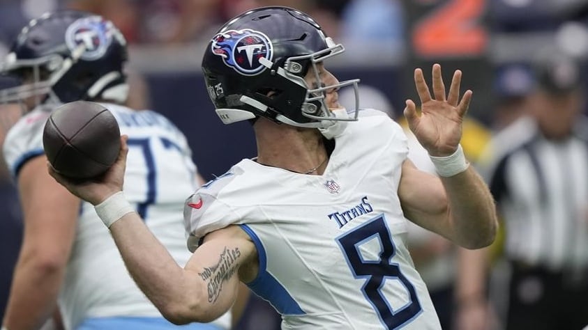 HOUSTON (AP) — Tennessee Titans quarterback Will Levis left Sunday's 26-3 loss to the Houston Texans with a foot injury and it's unclear if he'll be back for the team's season finale next week against Jacksonville.