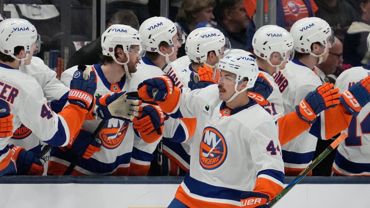 COLUMBUS, Ohio (AP) — Simon Holmstrom scored 1:50 into overtime as the New York Islanders beat the Columbus Blue Jackets 4-3 on Saturday night for their fourth straight win.