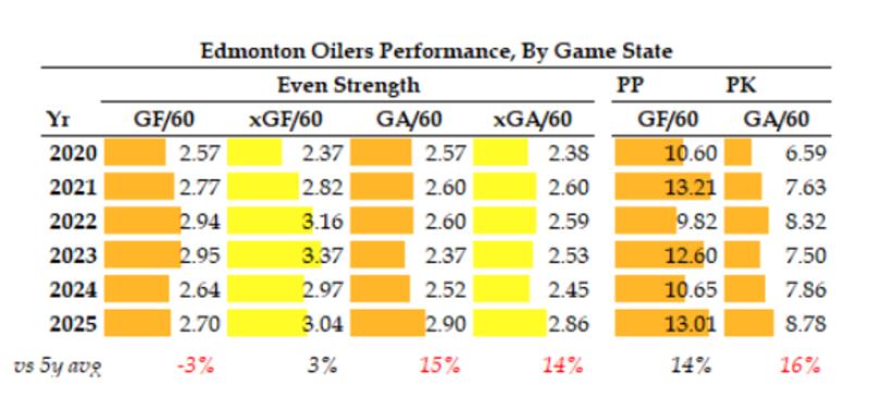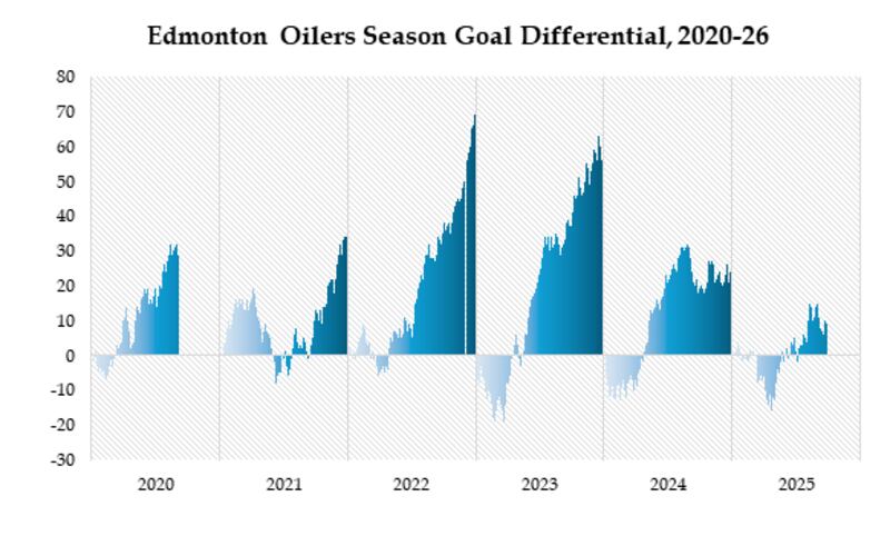 The offensive firepower has been there, but the regular-season dominance hasn’t always been guaranteed. In fact, since the 2020-21 pandemic-shortened year, the Oilers are just 10th in goal differential (+69) – a strong number, but perhaps less than you’d expect for a team that’s routinely been pushing deep into the playoffs.