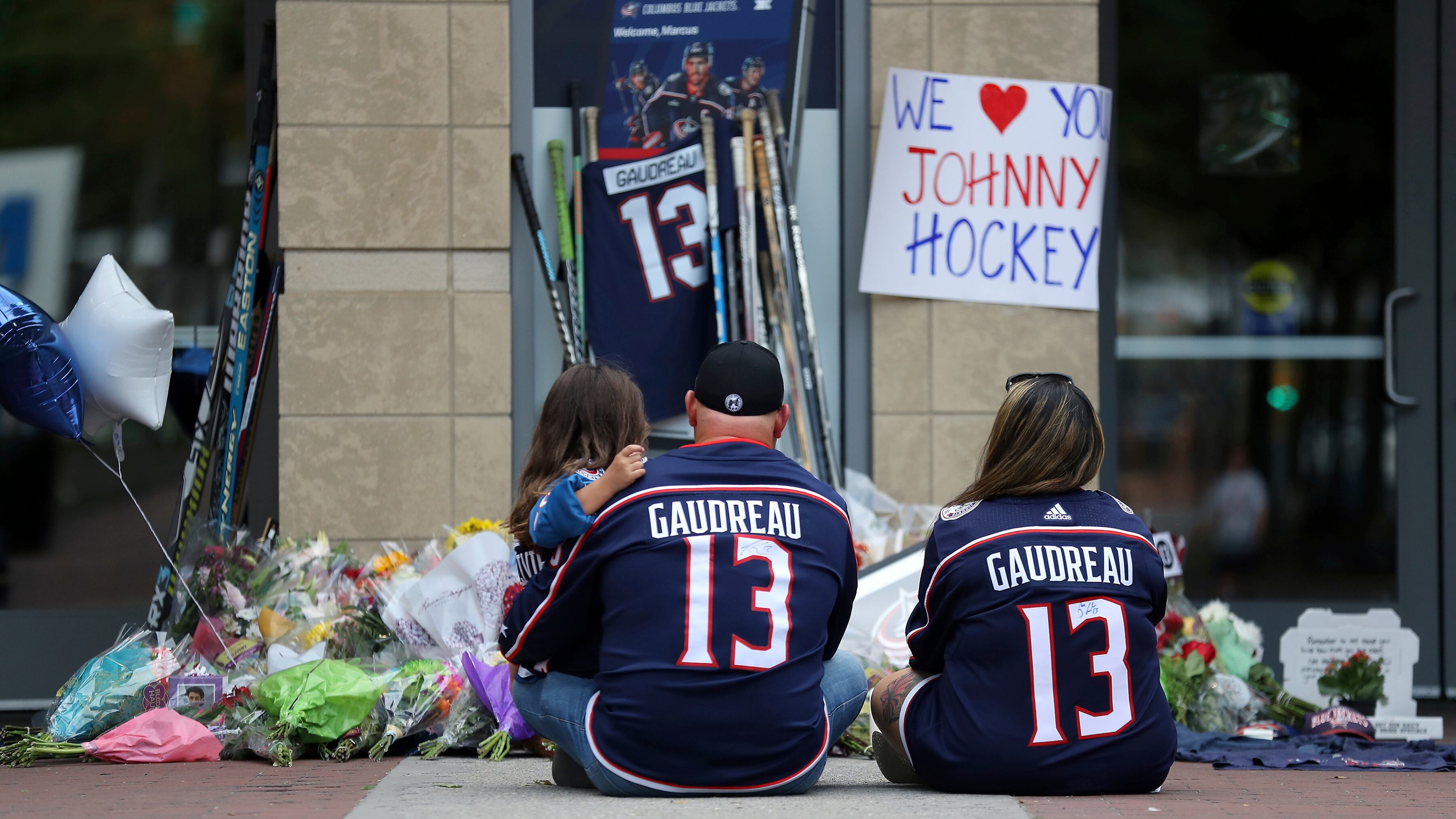 Flanked by a memorial 20 feet deep and 40 feet wide (6 meters by 12 meters) of jerseys, candles, balloons, stuffed animals, Gatorade bottles and signage, players including captain Boone Jenner, defenseman Erik Gudbranson and forward Cole Sillinger shared their memories of Johnny Gaudreau.