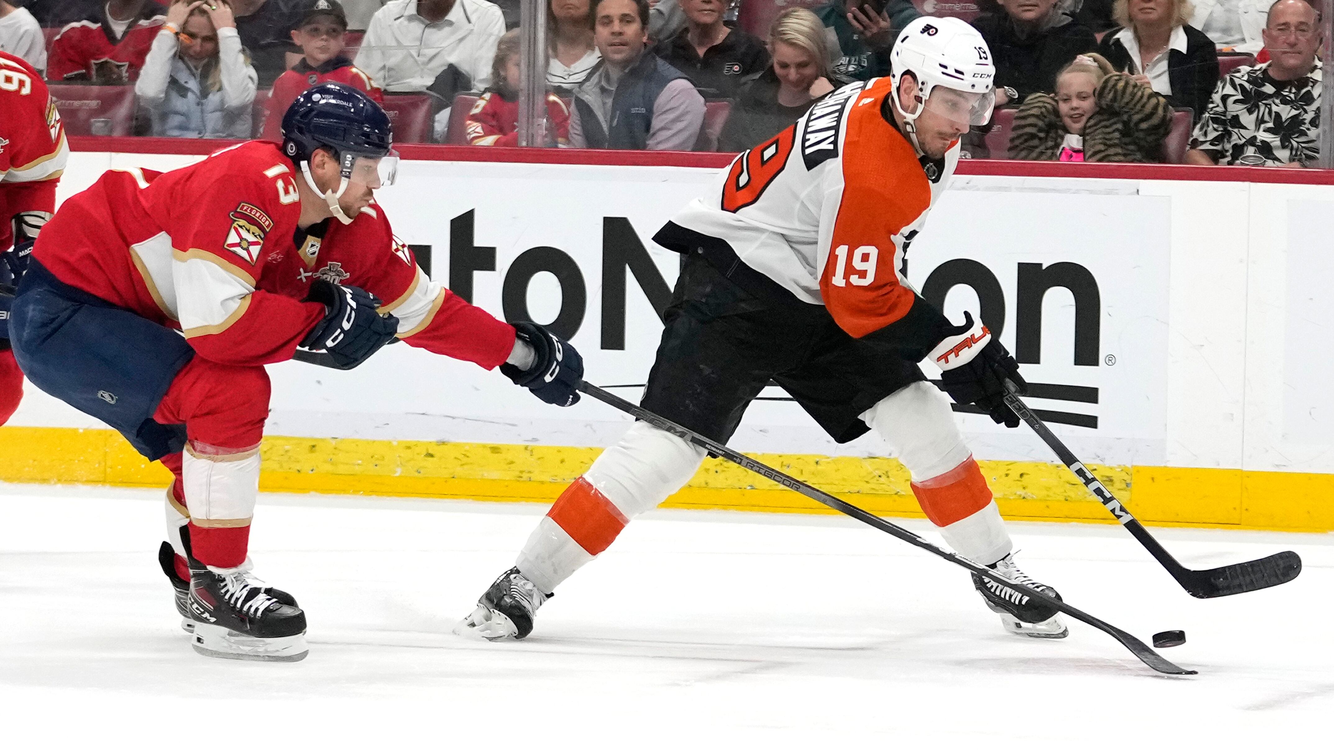 SUNRISE, Fla. (AP) — Garnet Hathaway scored off a rebound with 22 seconds left to give the Philadelphia Flyers a 2-1 victory over the NHL-leading Florida Panthers on Thursday night.