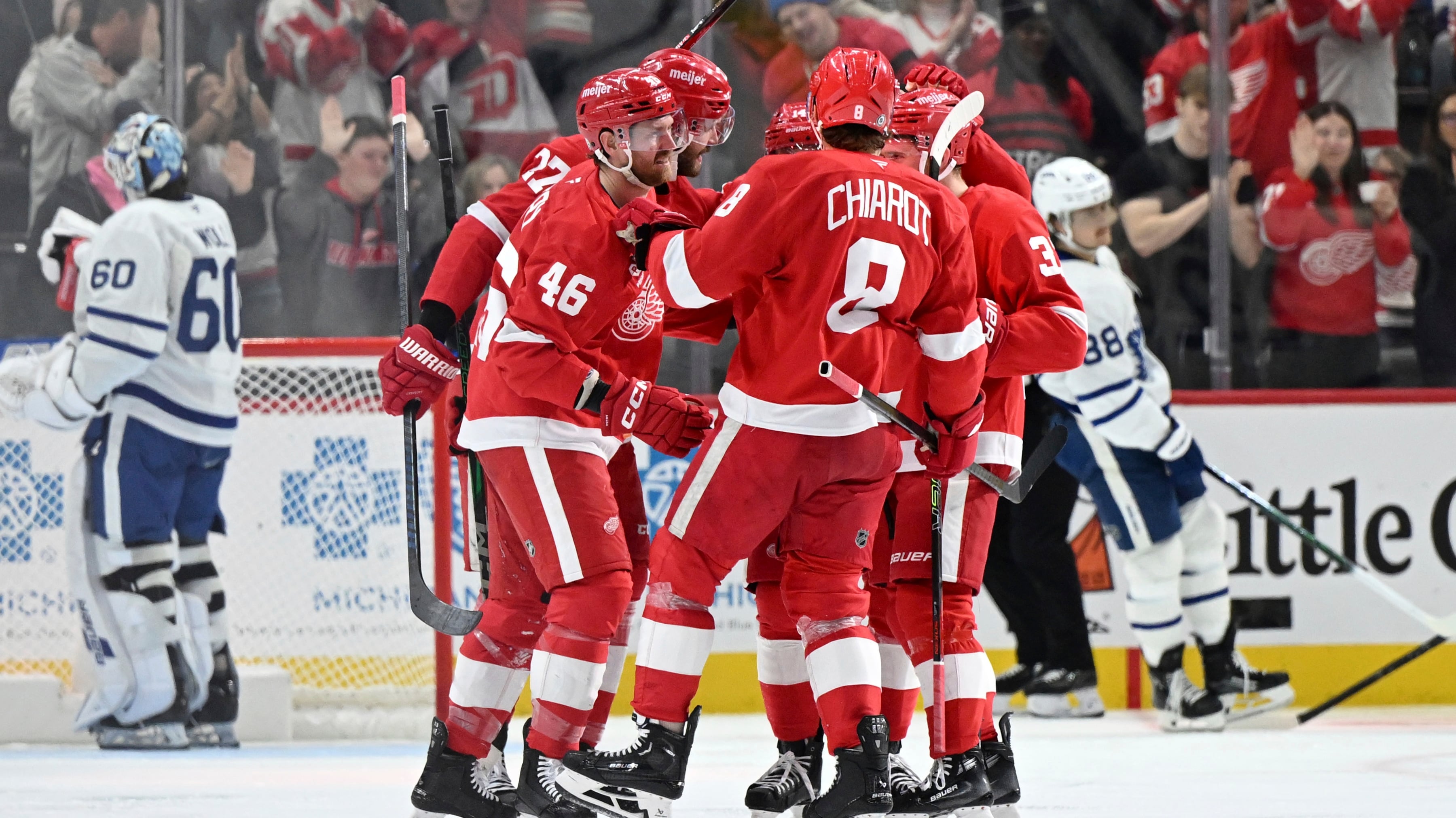 Moritz Seider and Lucas Raymond also scored for the Red Wings, who won for just the second time in eight games. Raymond's empty-netter was his 10th goal in the last 12 games.