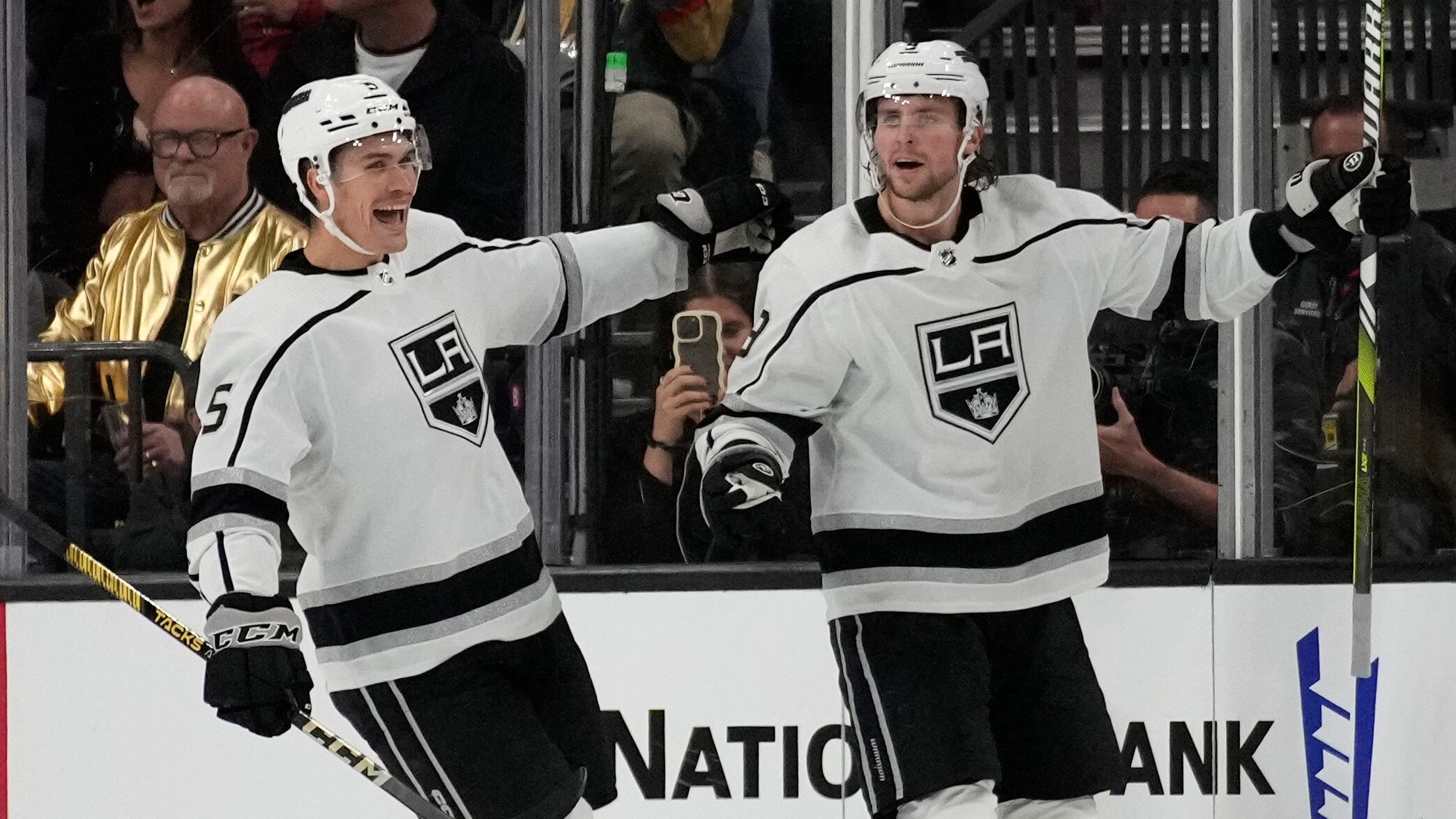 Hemmed into the offensive zone, defenseman Jordan Spence blasted a shot from the blue line and Kempe was there for the clean up on the right side of the net, slamming home the rebound for a 1-0 lead.