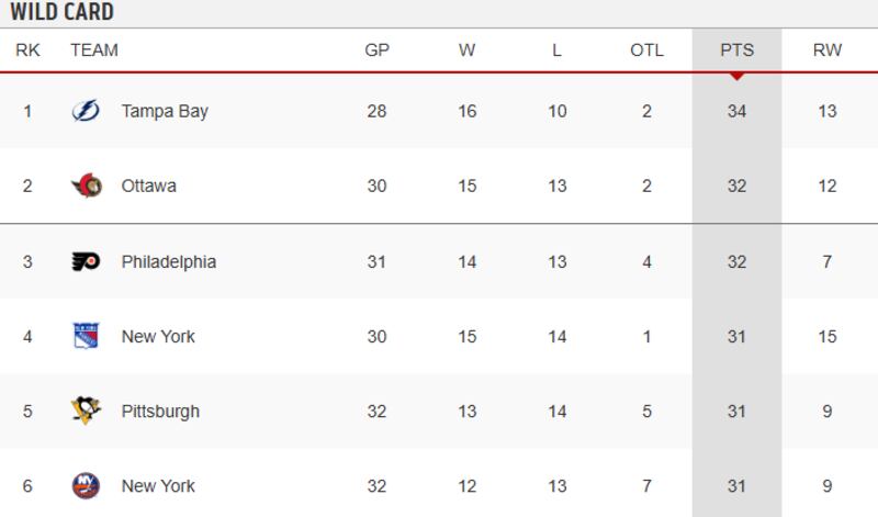 After starting this season 8-11-1, the Senators have caught fire with a 7-2-1 record in their past 10 games to jump into the playoff picture. Their standing remains precarious though, with the Philadelphia Flyers equal at 32 points with one more game played and the New York Rangers one point back with the two teams equal in games played. The Pittsburgh Penguins and New York Islanders are also just one point back with two more games played in the competitive playoff race.