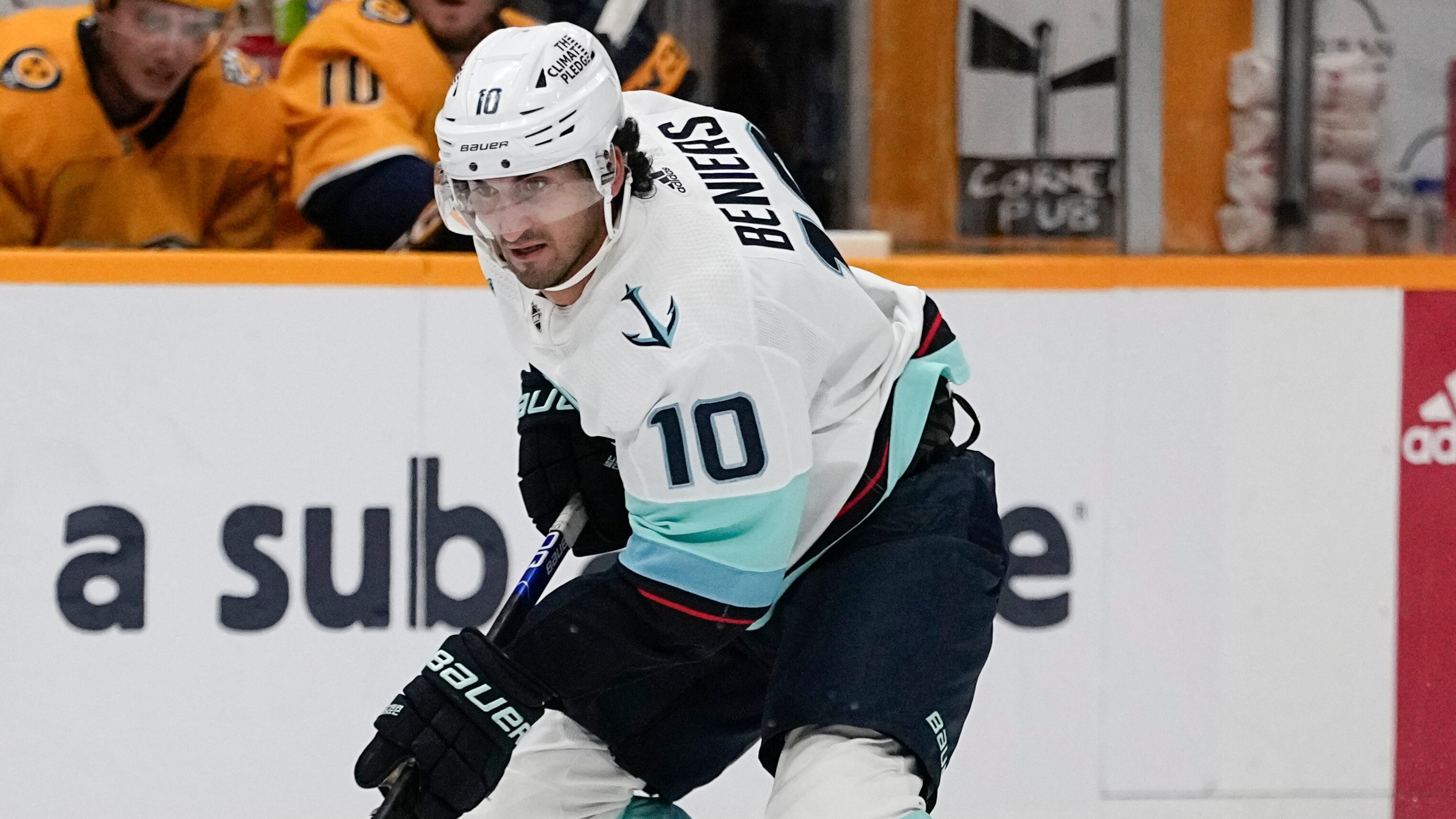 Beniers was the No. 2 pick in the 2021 NHL draft and made his debut late in Seattle’s inaugural season. He flashed as one of the top young centers in the league during his first full season with the Kraken when he had 24 goals and 57 points and was selected as the top rookie in the league. Beniers helped lead Seattle to the playoffs in just its second season.