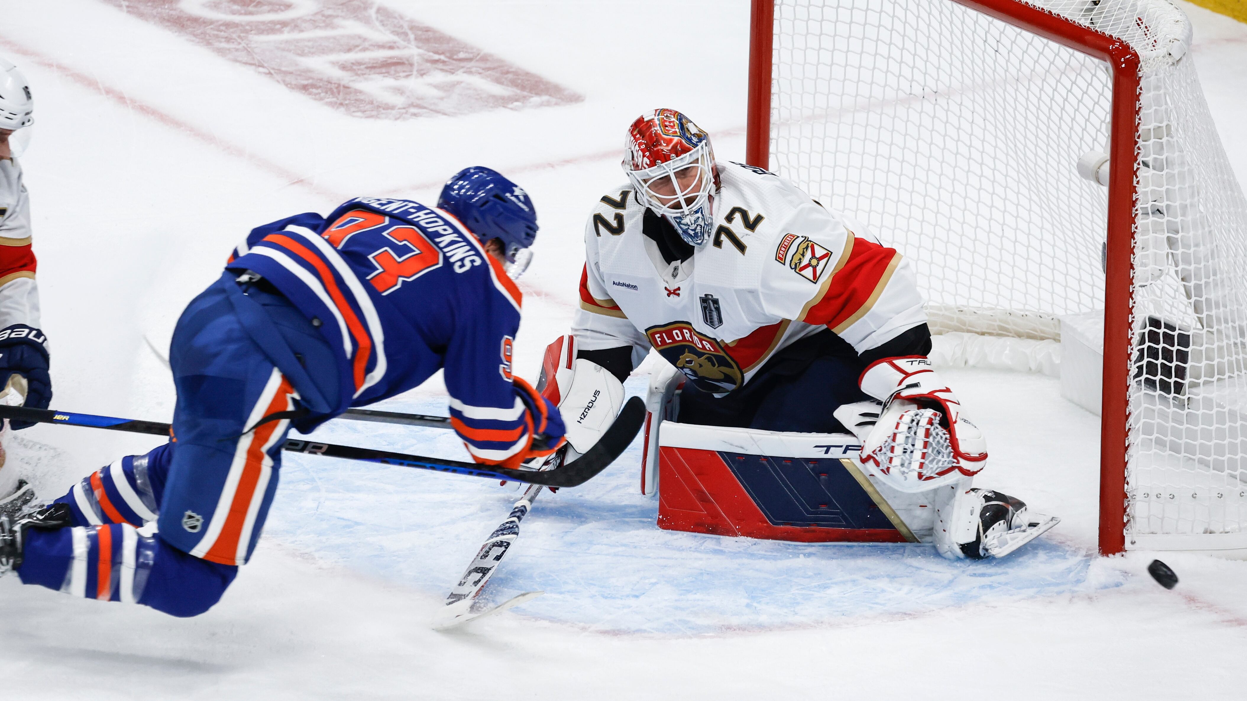 Just minutes later, the Panthers scored three quick goals to quiet the Edmonton fans. Late in the game, while preserving a one-goal lead, he spread his pads wide to rob Ryan McLeod.