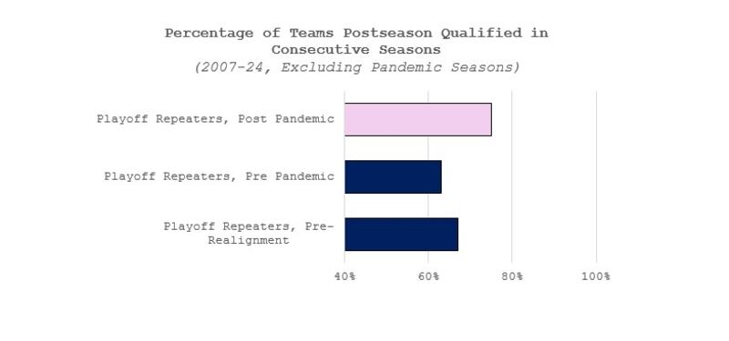 - Playoff repeat rates after realignment until the pandemic (which caused temporary changes to the playoff format structure)
