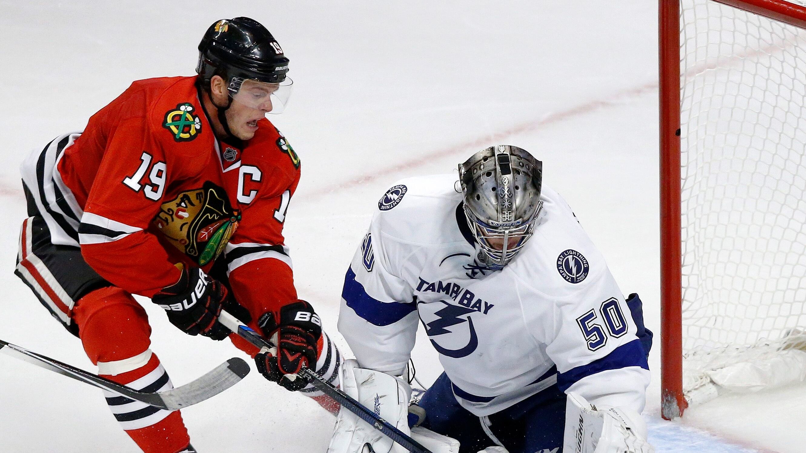 A determined Toews netted the winner when he barrelled into the Tampa Bay zone, and muscled between Anton Stralman and Valtteri Filppula to the net. Rookie goalie Kristers Gudlevskis stopped Toews' initial chance, but the Chicago captain knocked in his own rebound.