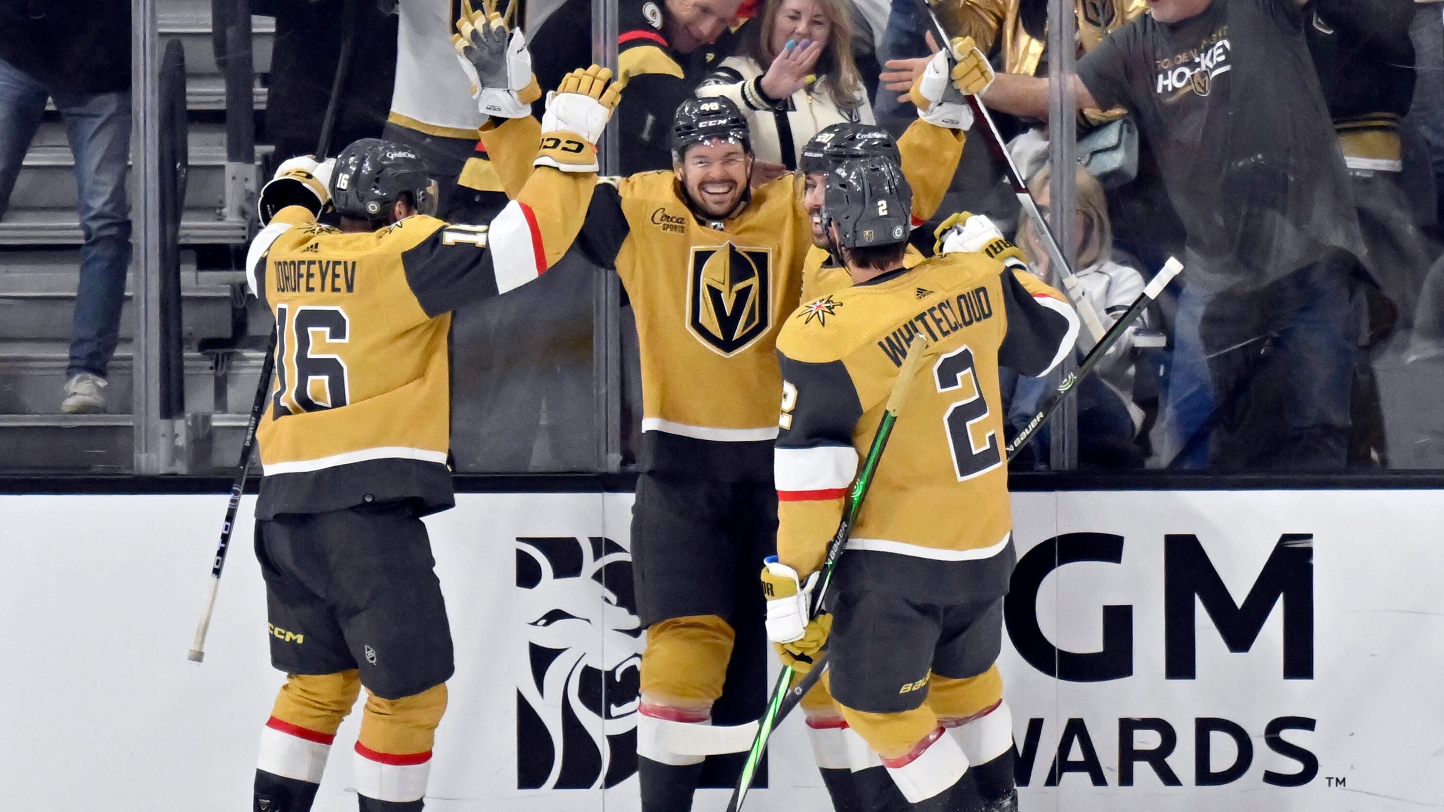 It was an overall festive night for Vegas. The fans, including San Francisco 49ers star running back Christian McCaffrey wearing an Eichel jersey, were ready to party as the Knights not only assured themselves of another playoff spot but snapped a three-game losing streak.