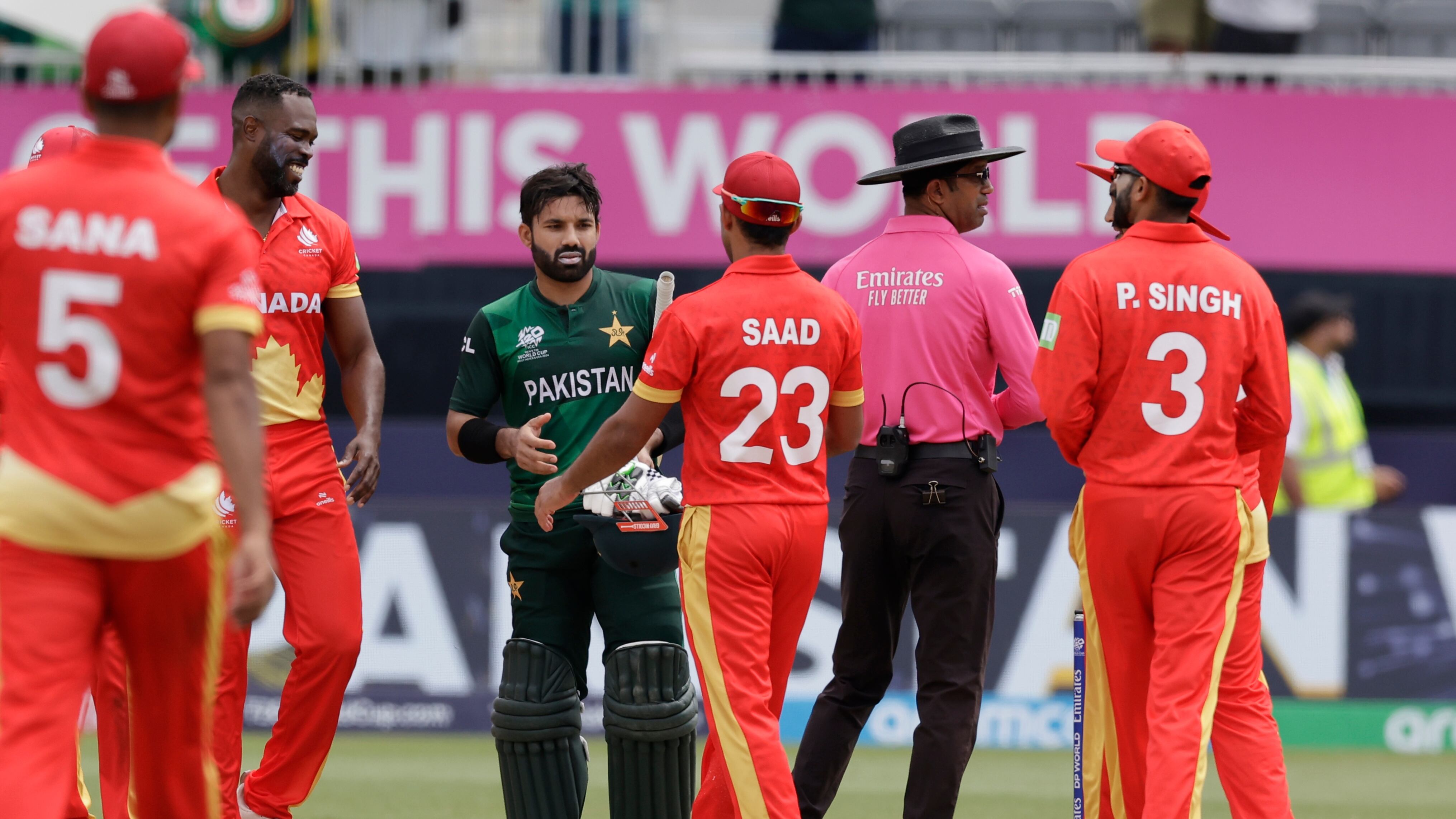Canada made one change to its starting lineup, with Singh slotting in for Dilpreet Bajwa. Saim Ayub came in for Iftikhar Ahmed, moving into the No.2 spot in the Pakistan batting lineup.