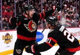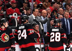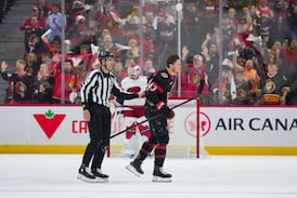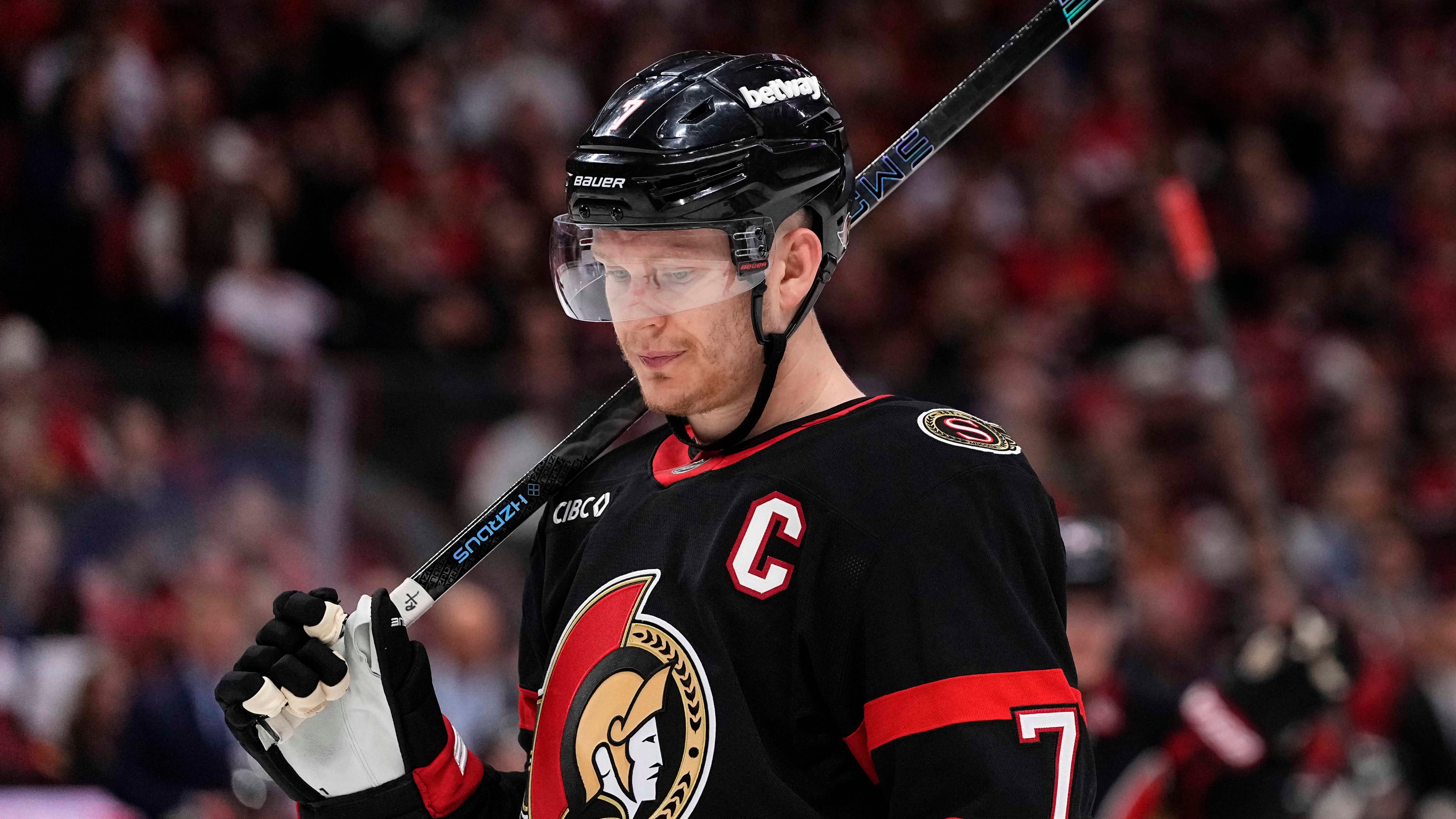 Senators captain Brady Tkachuk speaks to the media after a 2-1 loss to the Hurricanes in game 3.