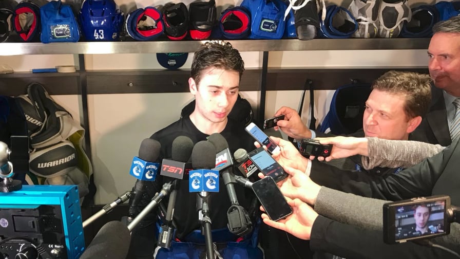 4) Quinn Hughes has been every bit as advertised as a guy who could step right into the National Hockey League and produce. With a pair of power play assists to help stake the Canucks to a 2-0 first period lead, Hughes picked up his second and third points in his fourth NHL game. His helper on the game's opening goal was a dazzling display of his talents as he carried the puck into the Nashville zone, worked a give and go with Markus Granlund and as two Predator defenders were drawn to Hughes along left wing, he dished a backhand pass onto the stick of Granlund who took advantage of a wide open lane to the net to score for the second straight game and for the 12th time this season. With Hughes as the helm, the Canucks second power play unit produced both Vancouver goals as the team went two for two on the night. It's too late to help the hockey club for this season, but the resurgent power play is now 9 for its last 32 (28.1%) over the past dozen games. Thursday was the eighth time this season -- but just the third since Christmas -- that the Canucks power play scored multiple goals in the same game. Hughes played 18:50 on the night including 1:23 with the man-advantage. His ice time has grown in each of his first four games from 15:36 (vs LAK) to 16:05 (vs DAL) to 18:37 (vs SJS) to Thursday's 18:50 in Nashville.