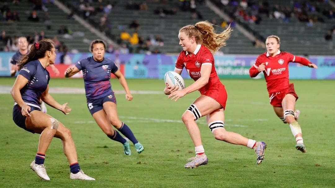 The Canadian women opened the day with a 28-19 win over France in the Cup quarterfinals, leading 21-0 at the half before the French stormed back. Chloe Daniels, Hogan-Rochester, Piper Logan and Sabrina Poulin scored tries for Canada with Daniels kicking three conversions and Hogan-Rochester one.