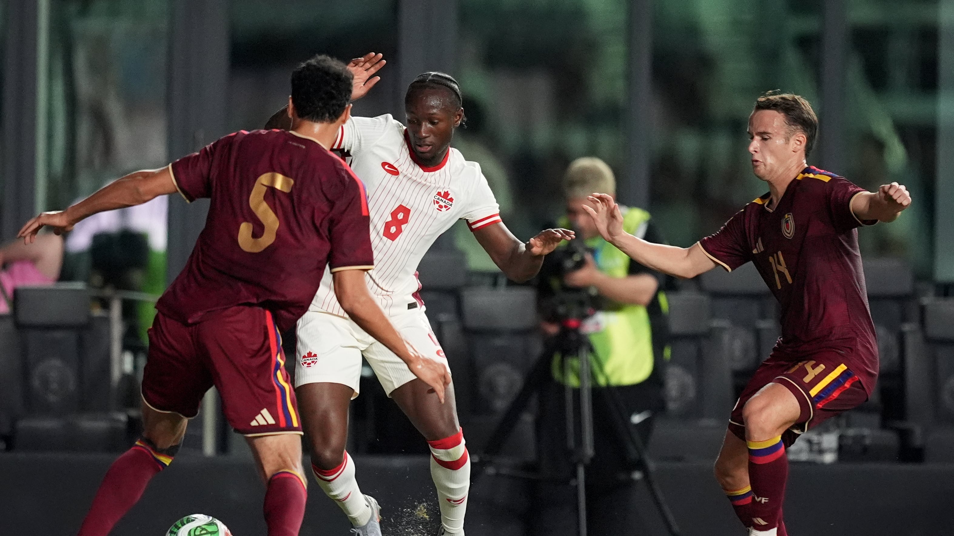 In the 60th minute, Ismael Kone - who scored Canada’s goal earlier in the 23rd minute - was given a straight red card after a high tackle against Kevin Kelsy of Venezuela.