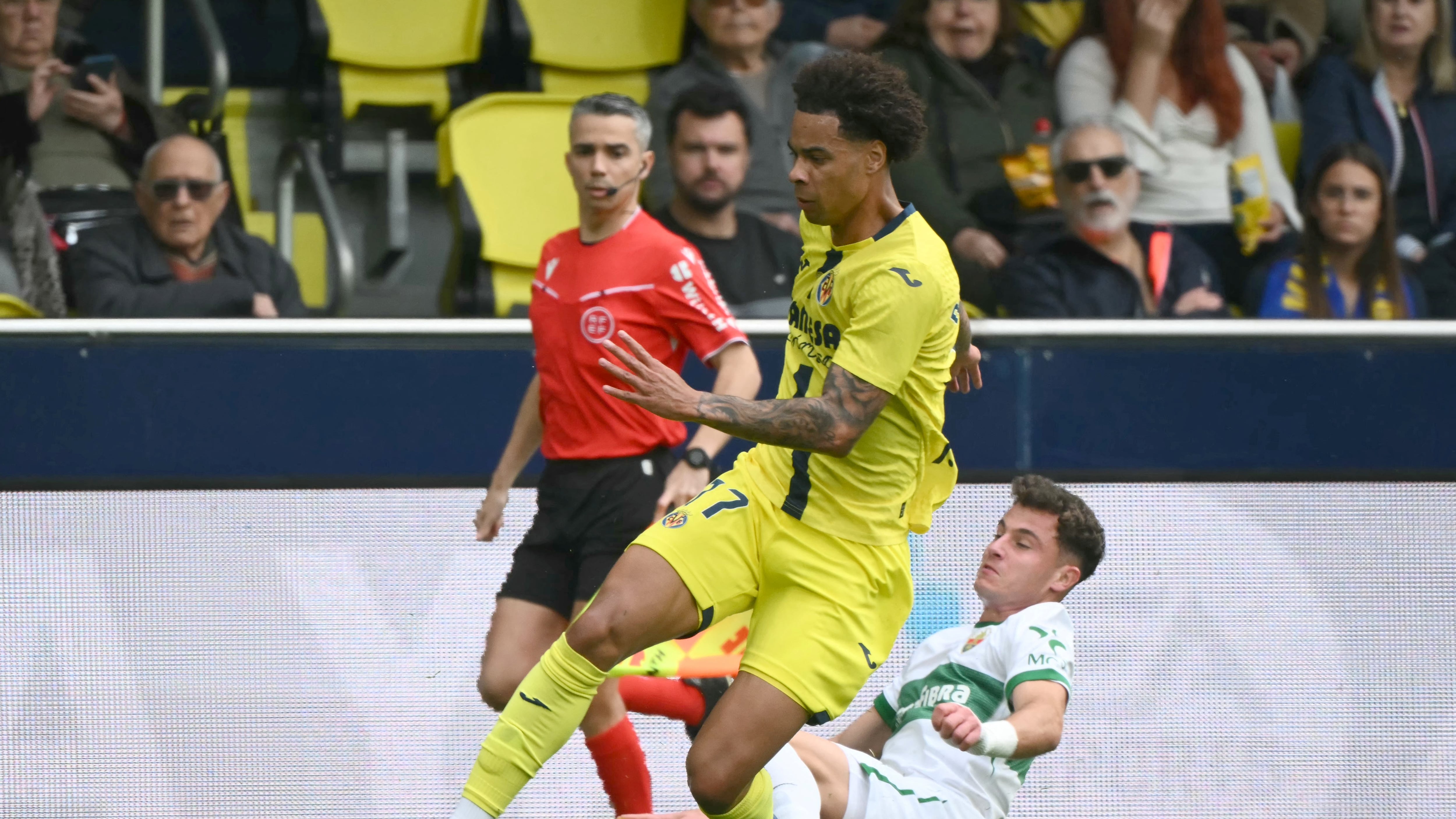 Elche probably should have been ahead by the time Buchanan opened the scoring. In the 19th, Aleix Febas forced a turnover deep into the Villarreal half, allowing Rafa Mir to spring Alvaro Rodriguez between the Yellow Submarine central defence. But he was wasteful and skied the ball well over the bar, spurning the first great chance of the match.