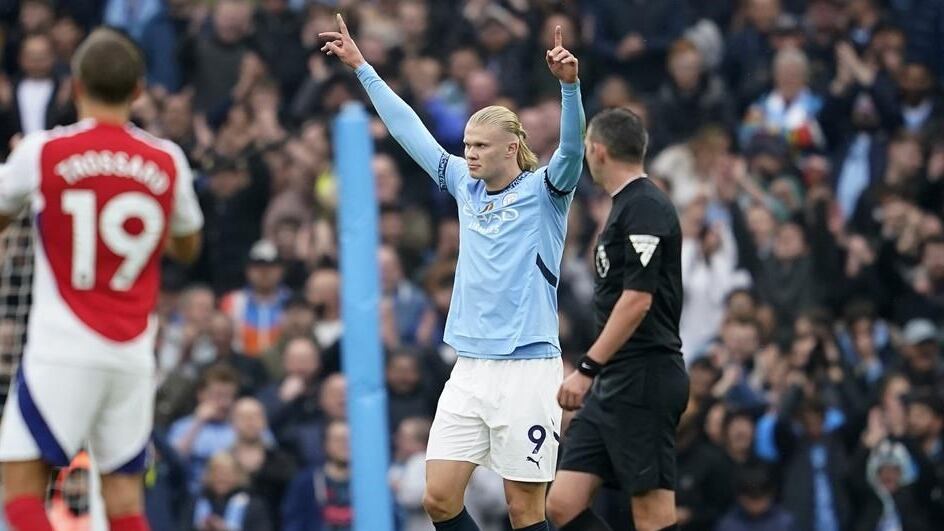 Haaland opened the scoring in the ninth minute at Etihad Stadium when running through on goal and firing past Arsenal goalkeeper David Raya.