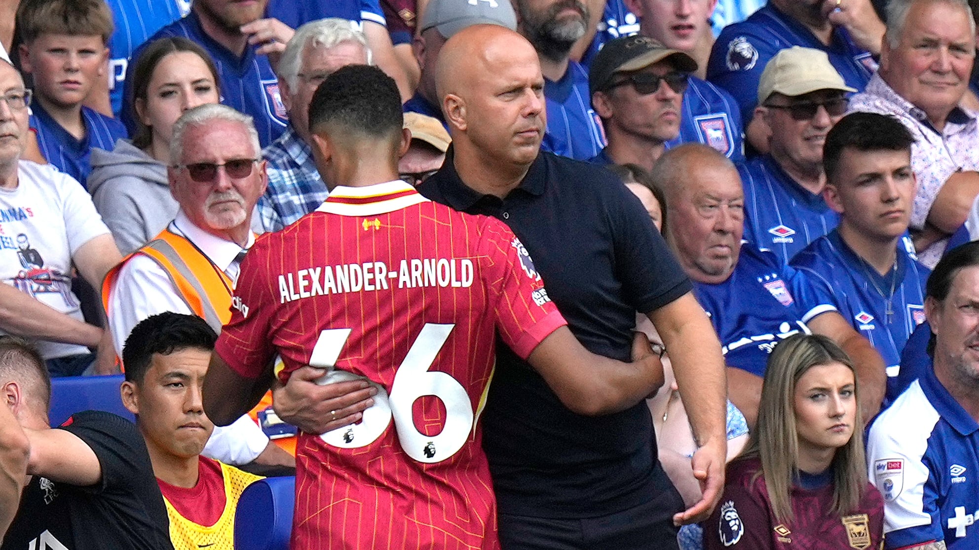 Liverpool’s new era under Arne Slot began with a 2-0 victory over promoted Ipswich, with Salah netting the second to take his tally of goals in the opening round of a Premier League season to nine — breaking a tie he had with English soccer greats Wayne Rooney, Alan Shearer and Frank Lampard.