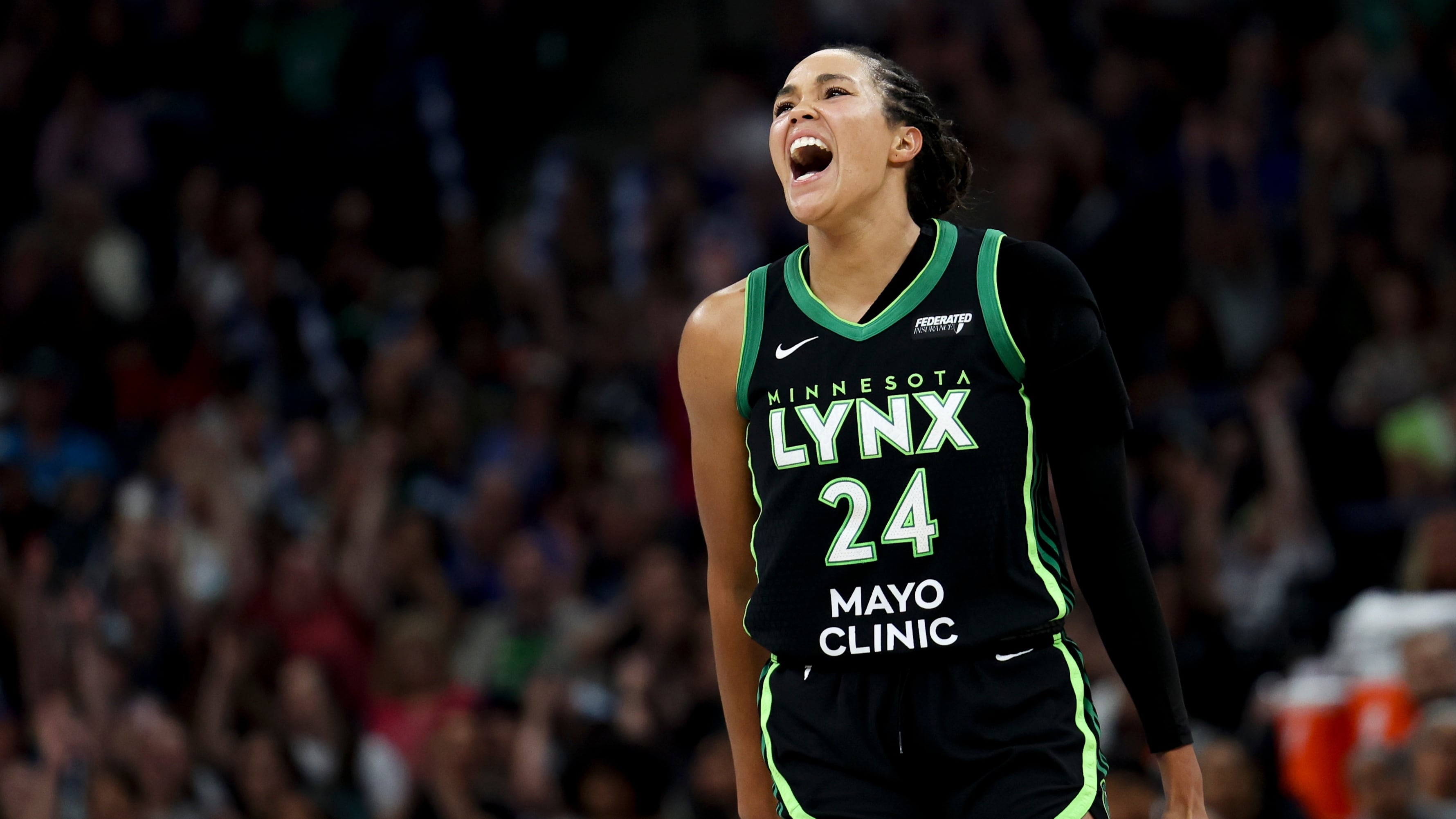 Collier finished second in MVP voting in 2025 for a second straight year after averaging 22.9 points and 7.3 rebounds for the Lynx and becoming the second player in league history to finish a regular season with a 50-40-90 shooting split.